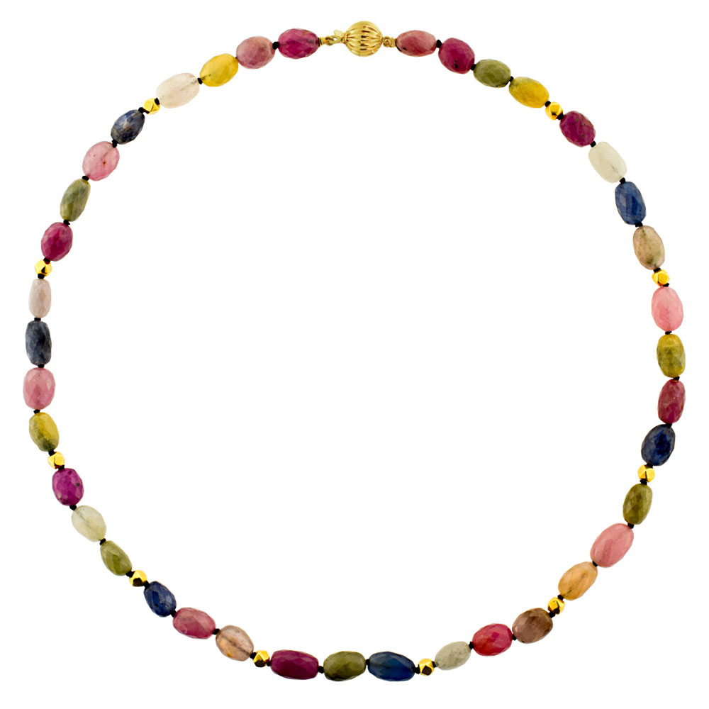 Κολιέ με φασεταρισμένα πολύχρωμα ζαφείρια 7×9 χιλιοστών, 10 στοιχεία Κ18 και κούμπωμα Κ18.