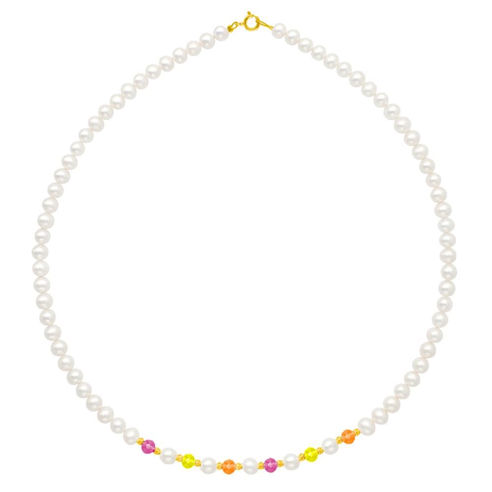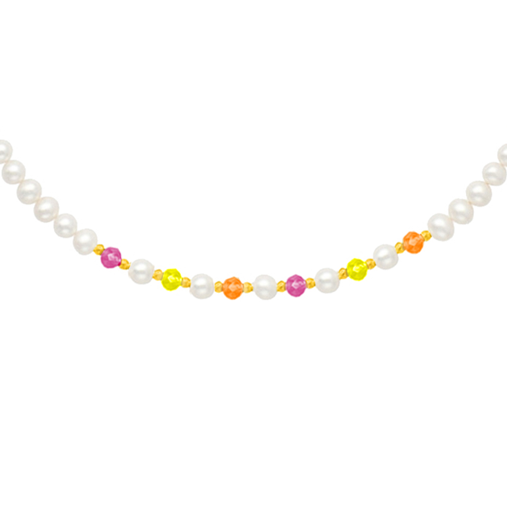 Κολιέ με Κ14 χρυσά στοιχεία, λευκά μαργαριτάρια και πολύχρωμα ζιργκόν – S123983MZ