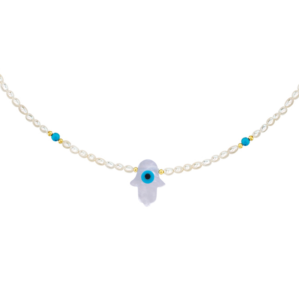 Στο κέντρο του υπάρχει ένα μενταγιόν – μοτίφ από Mother of Pearl 12×16 χιλιοστών, διακοσμημένο με ένα μάτι.