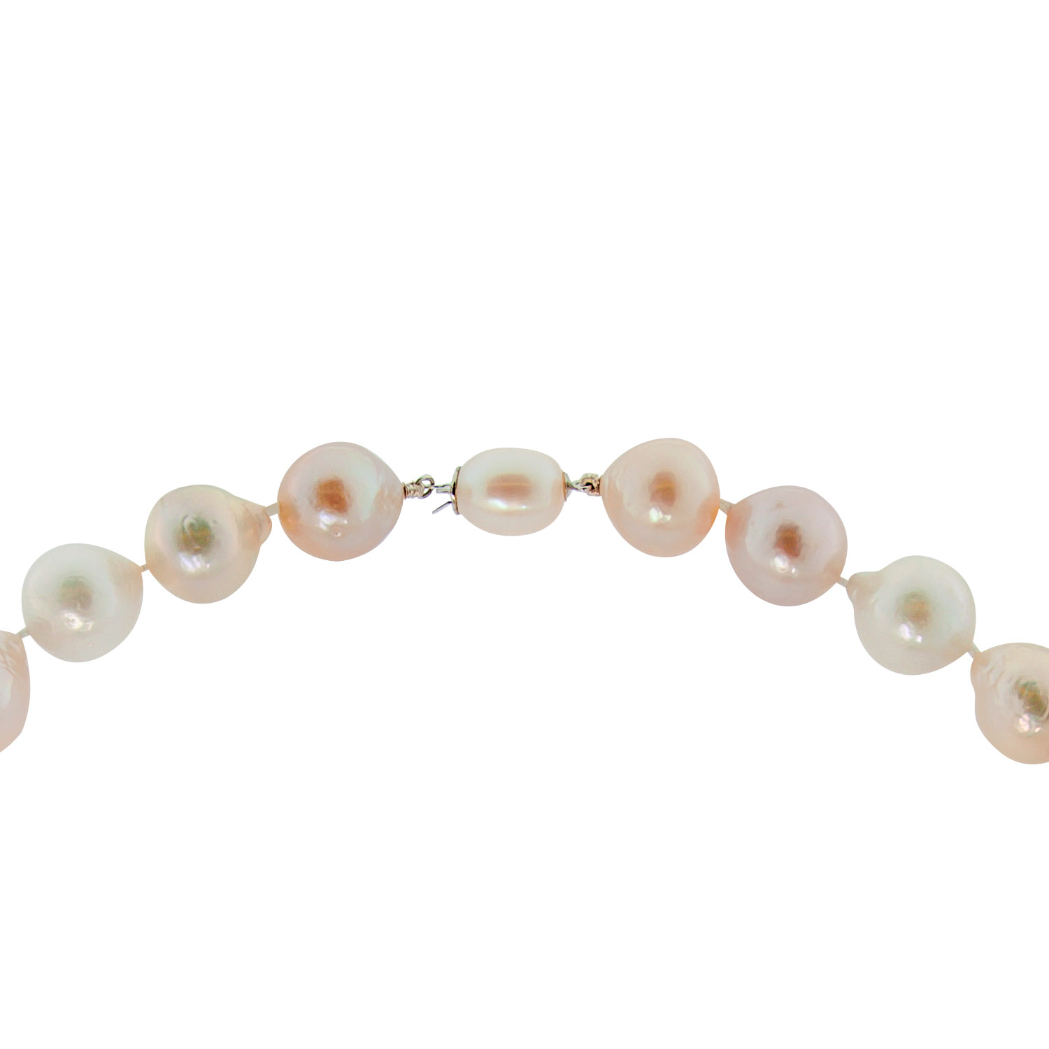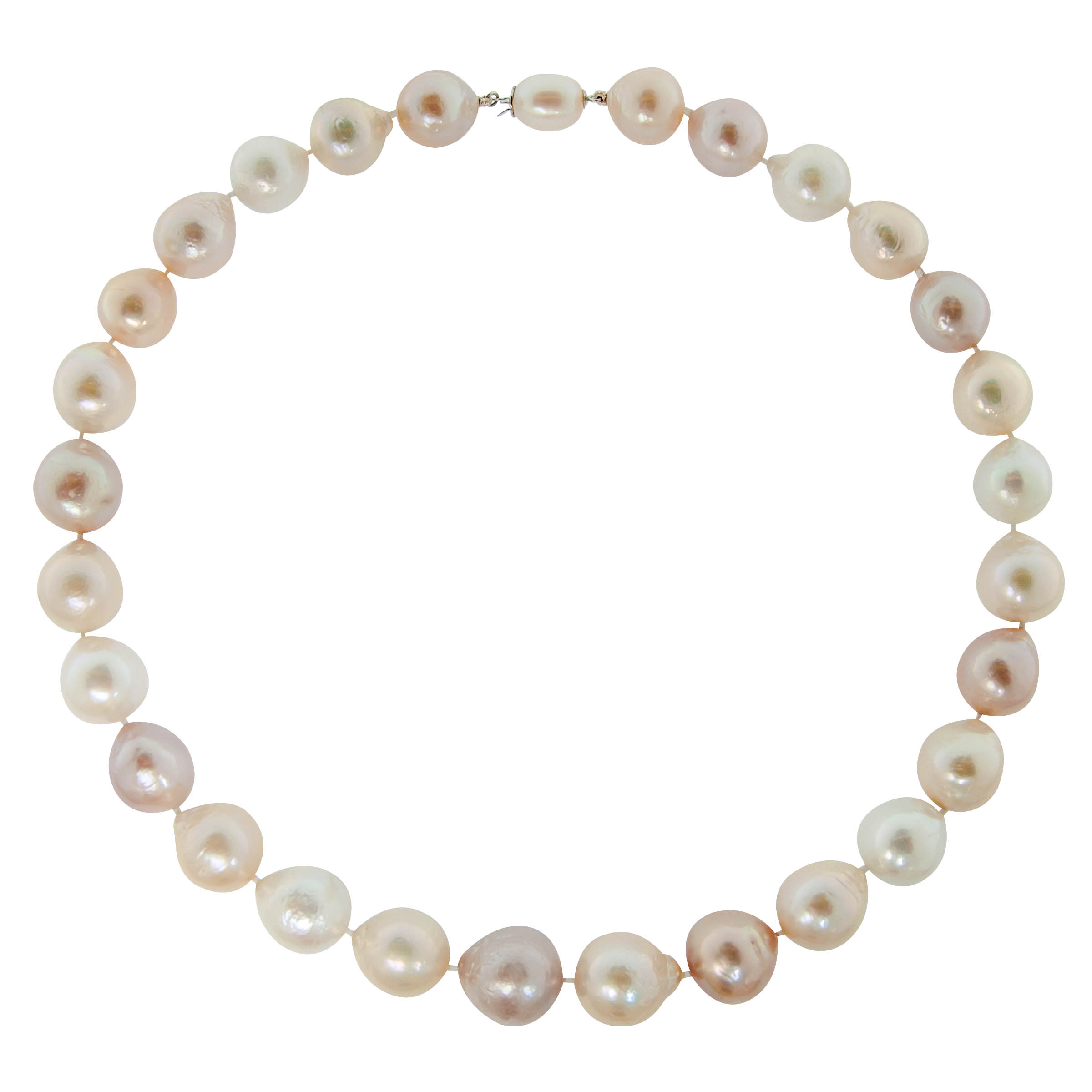 Κολιέ με πολύχρωμα μαργαριτάρια Fresh Water Pearl 13,0-17,0 χιλιοστών και χρυσό ή λευκόχρυσο κούμπωμα ασφαλείας 18 καρατίων με μαργαριτάρι 10,0-12,0 χιλιοστών.
