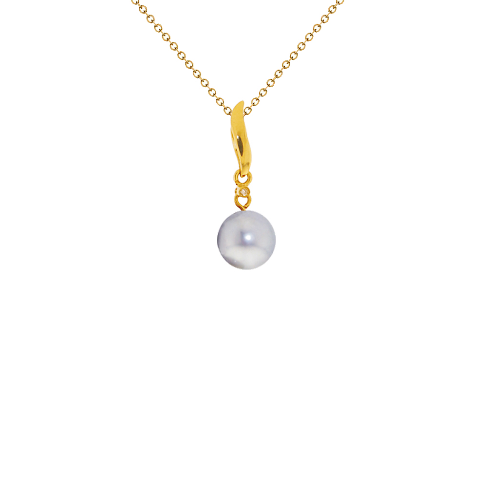 Μενταγιόν με γκρι μαργαριτάρι QTV Akoya Pearl 7,5-8 χιλιοστών σε Κ18 χρυσή βάση με 1 διαμάντι 0,01ct.