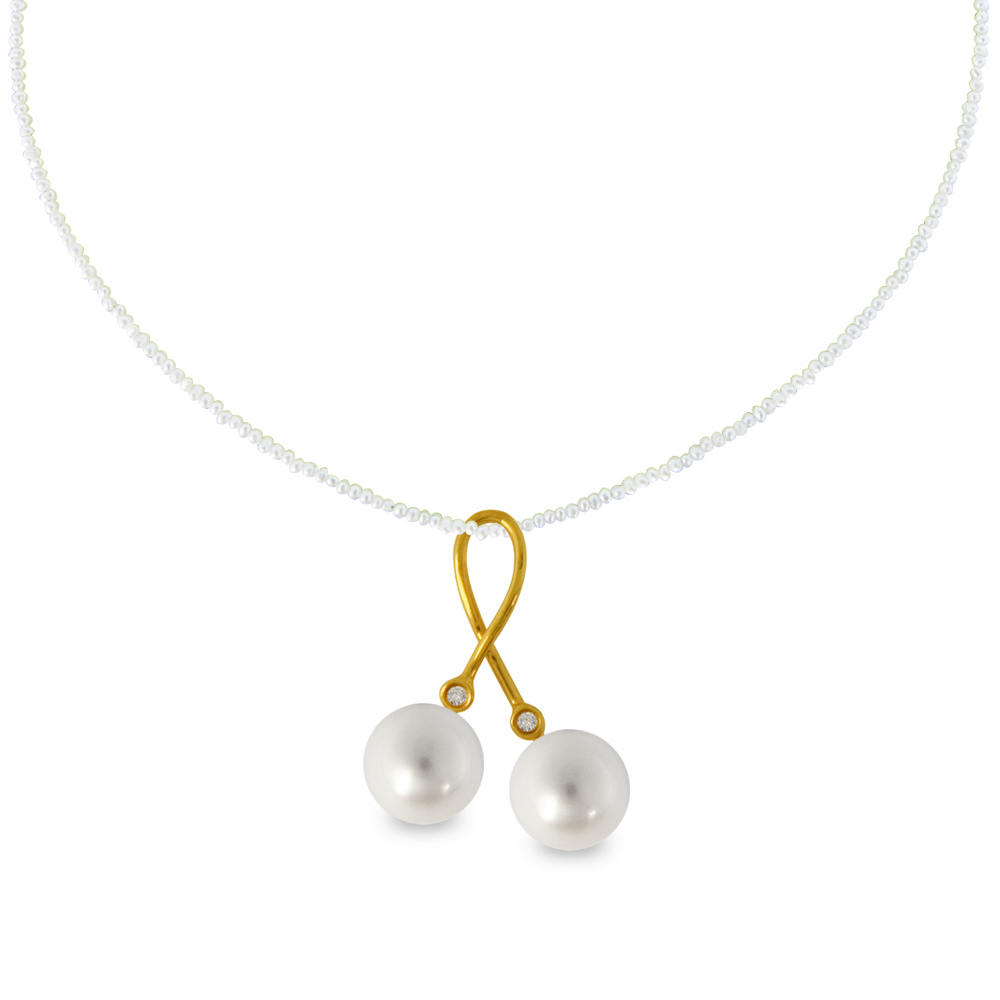 Μενταγιόν με 2 γκρι μαργαριτάρια QTV Akoya Pearl 7,5-8 χιλιοστών σε Κ18 χρυσή βάση με 2 διαμάντια 0,02ct.