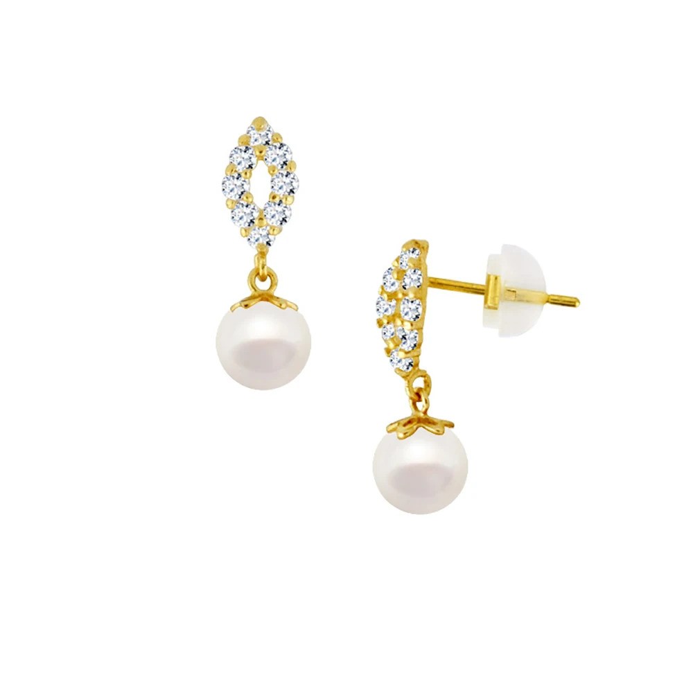 Ζευγάρι κρεμαστά σκουλαρίκια με 2 λευκά μαργαριτάρια QTV Akoya Pearl 5-5,5 χιλιοστών.