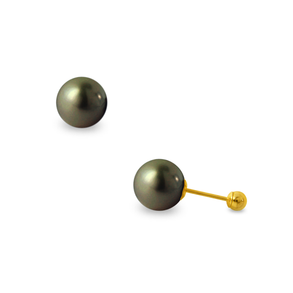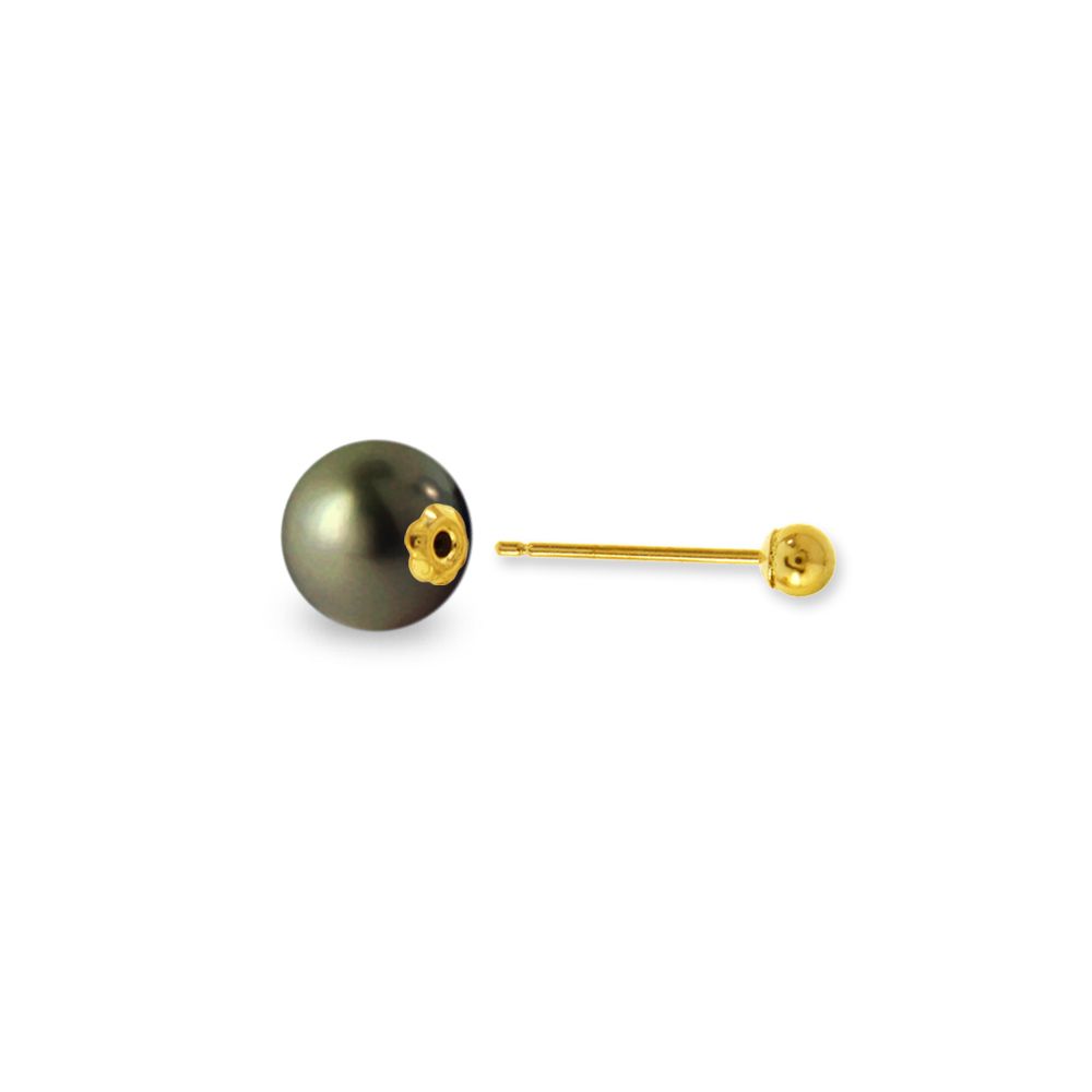 Σκουλαρίκια με μαύρα QTV Akoya Pearl 7,5-8 χιλιοστών και Κ18 βάση με μπίλια χρυσή 3 χιλιοστών.