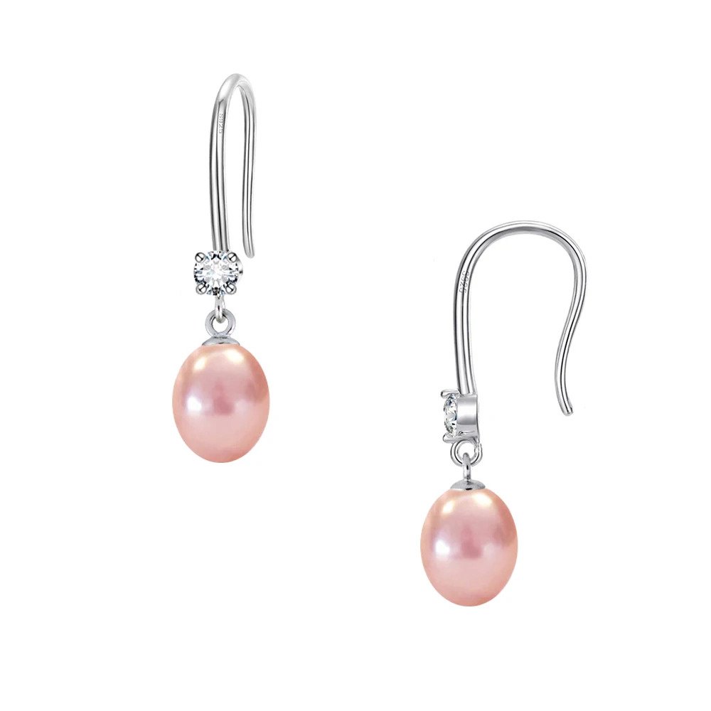 Ζευγάρι κρεμαστά σκουλαρίκια με σομόν μαργαριτάρια Fresh Water Pearl 8,5×11 χιλιοστών σε σχήμα Long.