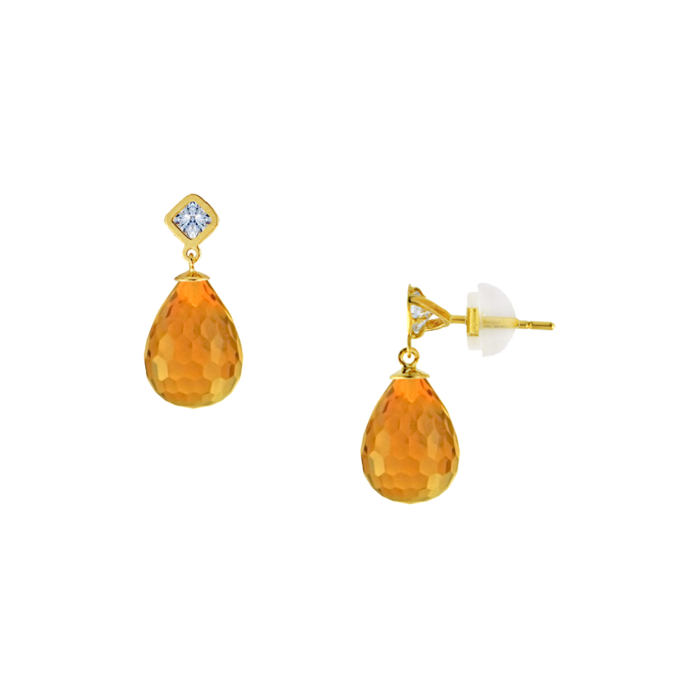 Ζευγάρι σκουλαρίκια με 2 ημιπολύτιμους λίθους Citrine Cubic Zircon Facet σε σχήμα Drop 7 x 10 χιλιοστών.