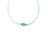 Βραχιόλι με Aqua 2-2,5 χιλιοστών, 1 μενταγιόν με Blue Topaz CZ σε χρυσό καστόνι Κ14 διαμέτρου 5×7 χιλιοστών, 6 στοιχεία Κ14 και κούμπωμα Κ14.