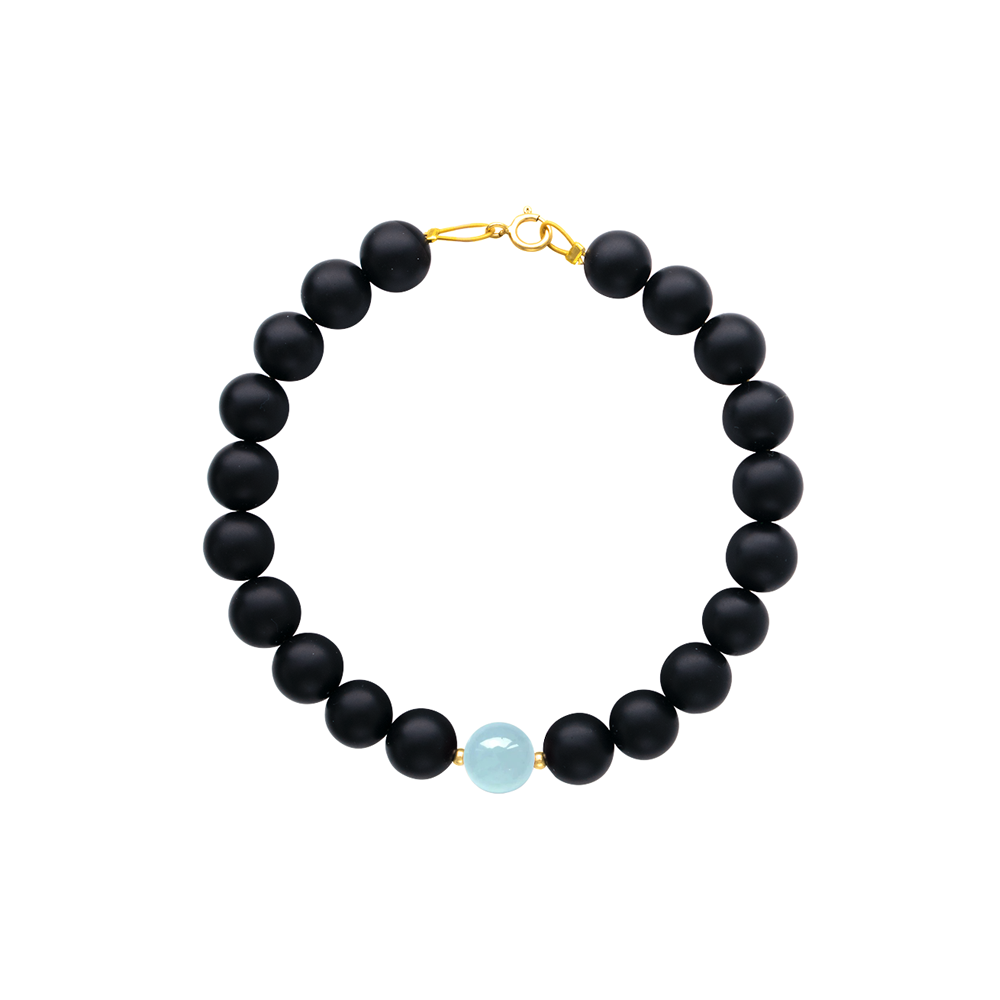Βραχιόλι UNISEX με ημιπολύτιμο λίθο Black Agate 8 χιλιοστών και στρογγυλή Aqua 8 χιλιοστών.