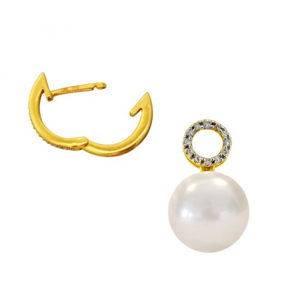 Σκουλαρίκια Κ18 σε χρυσή βάση με λευκα μαργαριτάρια και διαμάντια – G319016