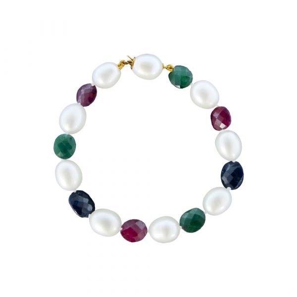 Βραχιόλι χρυσό Κ18, μαργαριτάρια 10,0×12,0mm και πολύτιμους λίθους – G121700