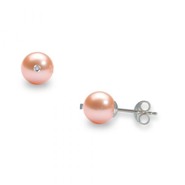 Σκουλαρίκια με σομόν μαργαριτάρια σε χρυσή βάση Κ18 και διαμάντια – G317599WS