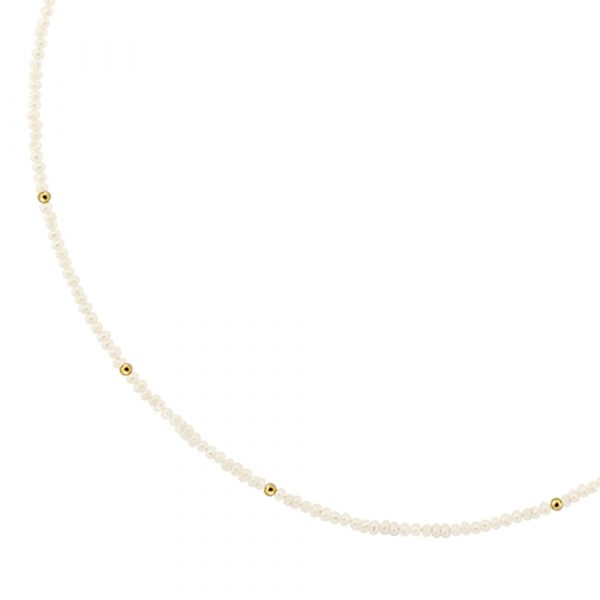 Κολιέ με λευκά μαργαριτάρια και χρυσό κούμπωμα Κ14 – M120593