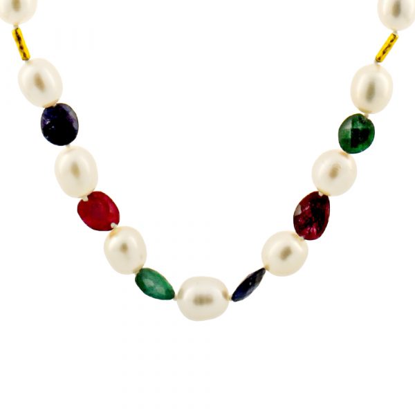 Κολιέ με λευκά μαργαριτάρια και πολύτιμους λίθους – M122009
