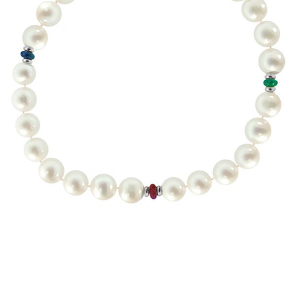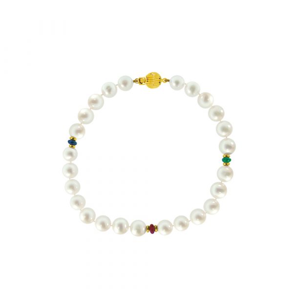 Βραχιόλι με χρυσό Κ14 κούμπωμα, μαργαριτάρια 6,0-6,5mm πολύτιμους λίθους – G121143