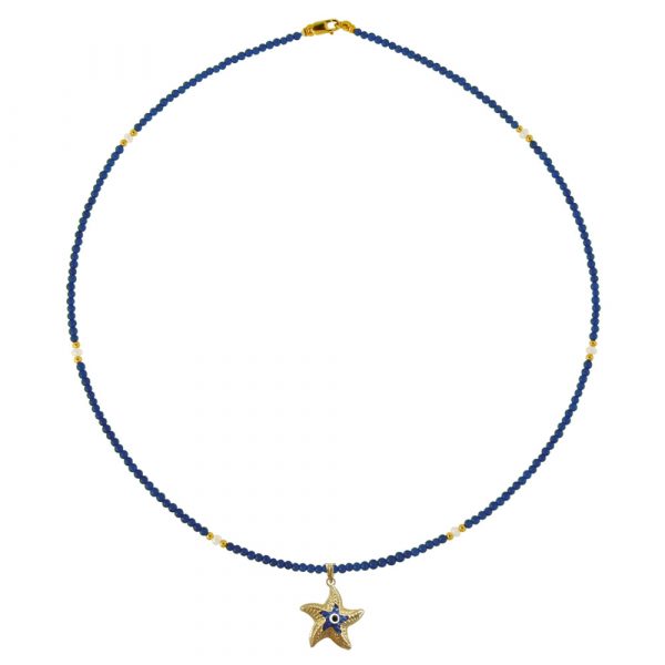 Κολιέ με λάπις λάζουλι και μαργαριτάρια – Μ320013LA