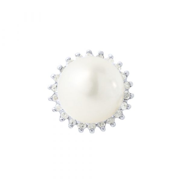 Σκουλαρίκια με λευκά μαργαριτάρια σε λευκόχρυση βάση Κ18 και διαμάντια – W317607