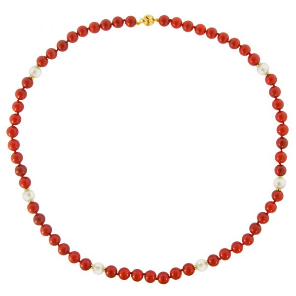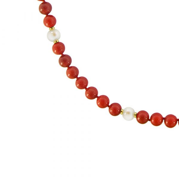 Κολιέ με χρυσά στοιχεία 14K, κοράλλια και μαργαριτάρια – M120010C