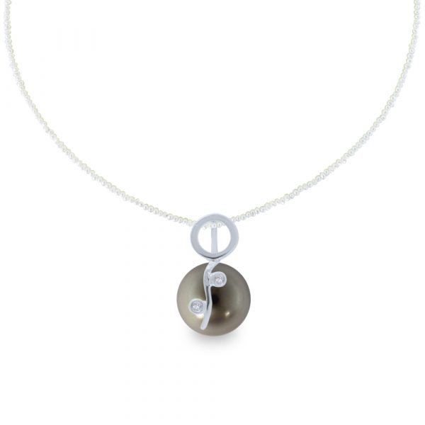 Μενταγιόν σε χρυσή βάση Κ18 με μαύρο μαργαριτάρι και διαμάντια – W318780B