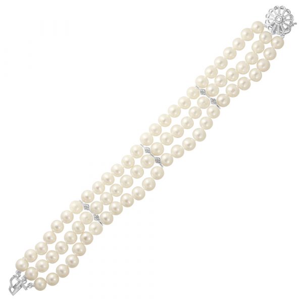 Βραχιόλι με Κ18 χρυσά στοιχεία, μαργαριτάρια 6,0-6,5mm και διαμάντια – G122258