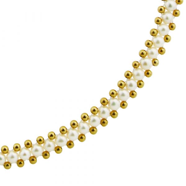 Κολιέ με λευκά μαργαριτάρια και χρυσά στοιχεία 14K – M122796