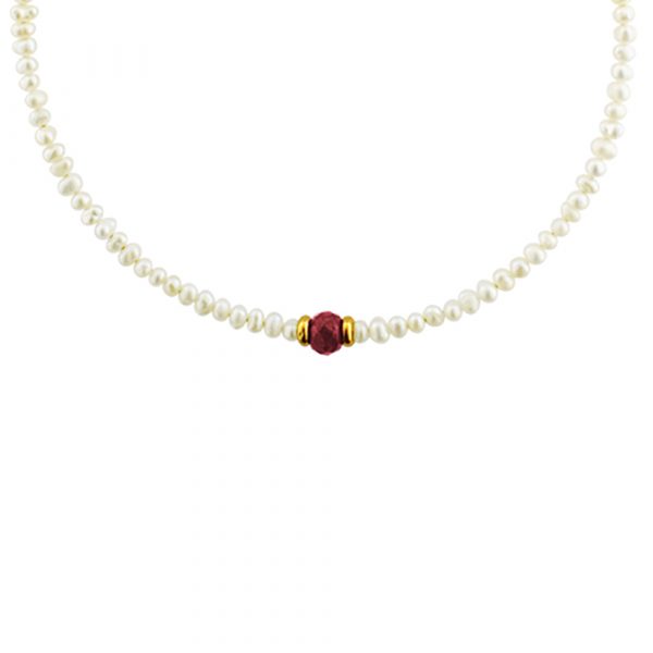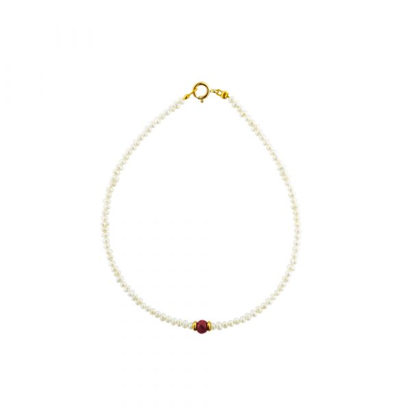 Βραχιόλι με χρυσά στοιχεία Κ14 μαργαριτάρια 2,0-3,0mm και ρουμπίνι – M122473R