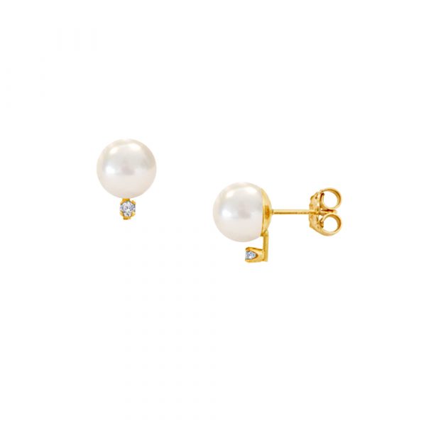 Σκουλαρίκια σε Κ14 χρυσή βάση με λευκά μαργαριτάρια και διαμάντια – G121360