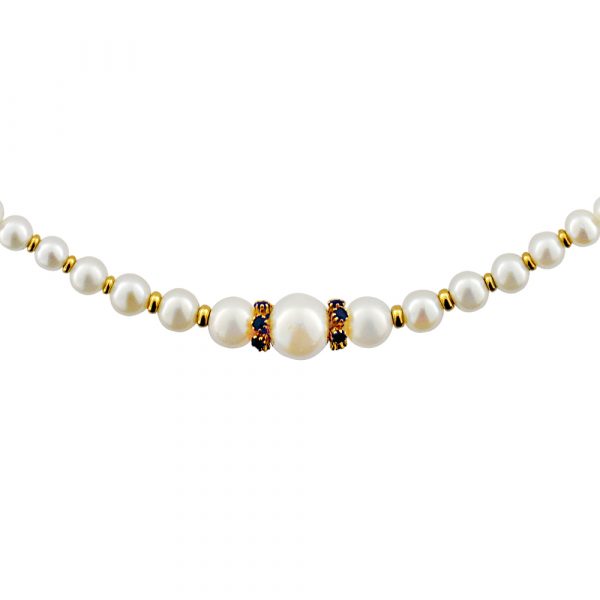 Κολιέ με λευκά μαργαριτάρια, ζαφείρια και χρυσά στοιχεία Κ18 – M122477S