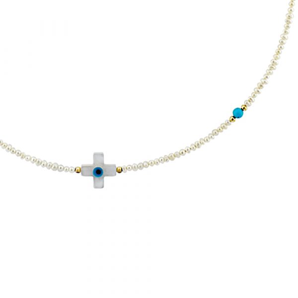 Κολιέ με μαργαριτάρια, τυρκουάζ και χρυσά στοιχεία Κ14 – M122742C