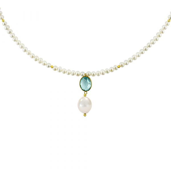 Κολιέ με λευκά μαργαριτάρια και χρυσό μενταγιόν K14 – M123083