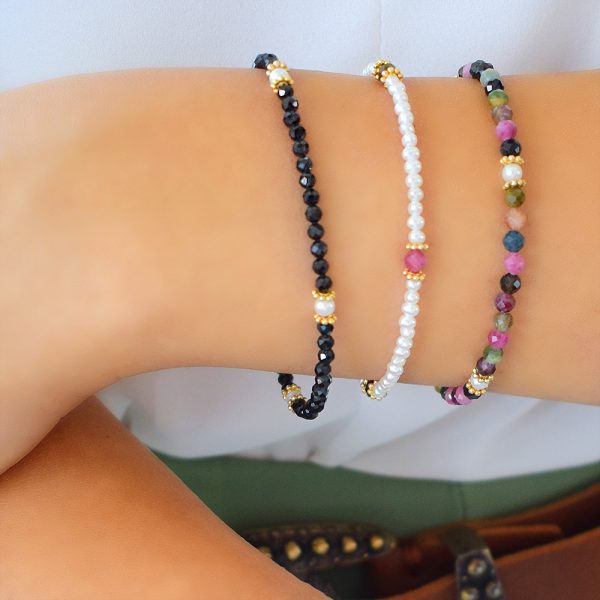 Βραχιόλι με Κ14 χρυσά στοιχεία και τουρμαλίνη – M123800