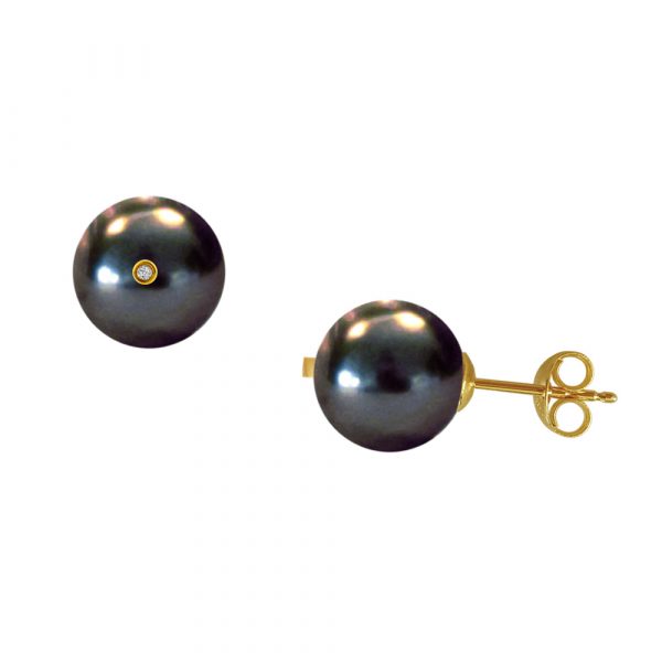 Σκουλαρίκια με μαύρα μαργαριτάρια σε χρυσή βάση Κ18 και διαμάντια – M123008B