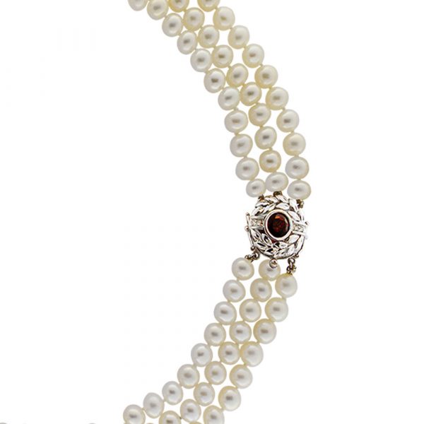 Κολιέ με λευκά μαργαριτάρια και λευκόχρυσο κούμπωμα K14 – M123835