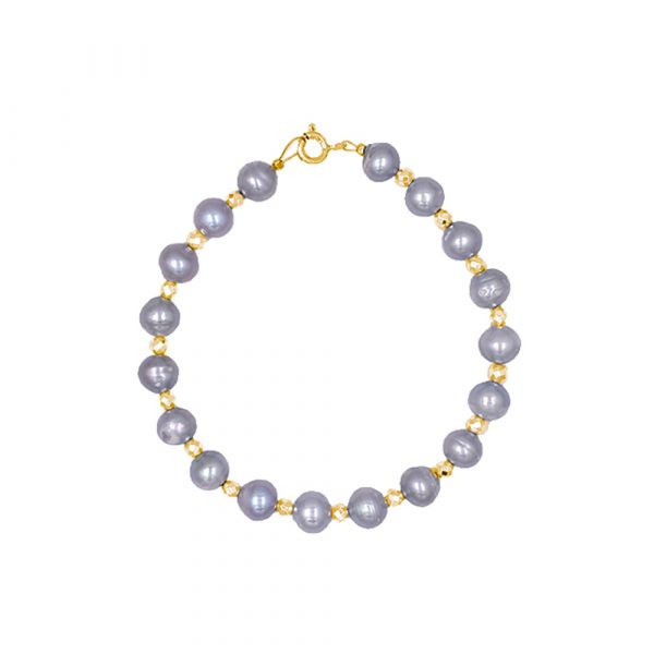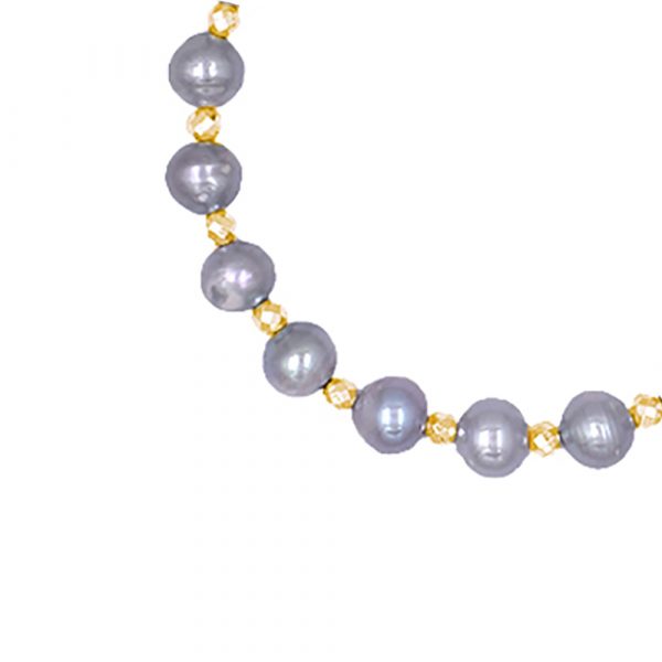 Βραχιόλι με χρυσό Κ14 κούμπωμα και γκρι μαργαριτάρια – M123920
