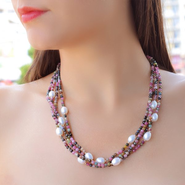 Κολιέ χρυσό Κ14 με τουρμαλίνη και μαργαριτάρια – M123625