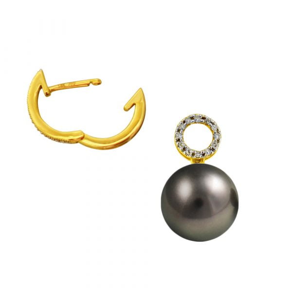 Σκουλαρίκια σε 18 χρυσή βάση με μαύρα μαργαριτάρια – G319016B