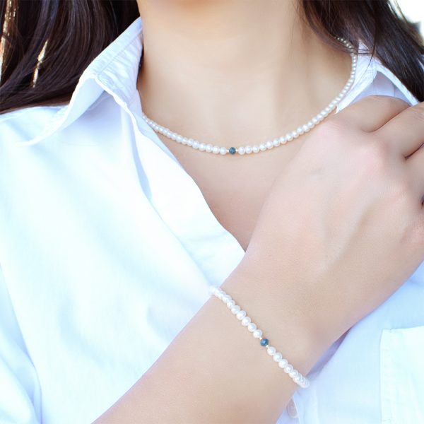 Κολιέ με Κ14 χρυσά στοιχεία με λευκά μαργαριτάρια και ζιργκόν – S123985B