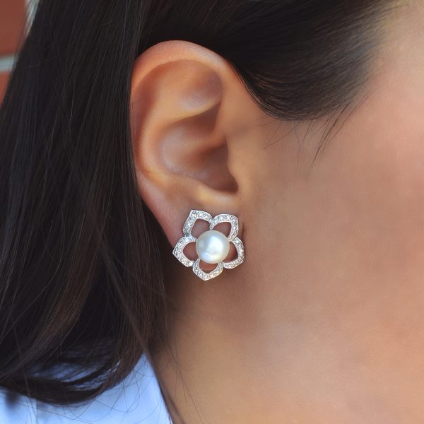 Σκουλαρίκια σε Κ18 λευκόχρυση βάση με μαργαριτάρια και διαμάντια – G312533