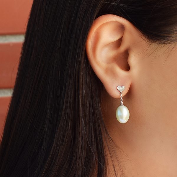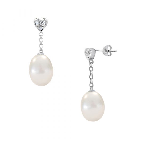 Σκουλαρίκια σε Κ18 λευκόχρυση βάση με μαργαριτάρια και διαμάντια – G314674