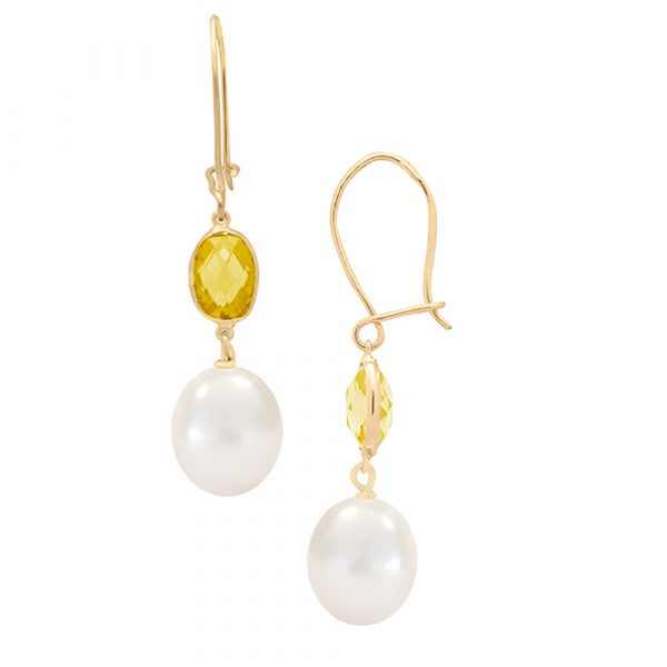 Σκουλαρίκια σε Κ14 χρυσή βάση με Citrine και μαργαριτάρι – F124061C