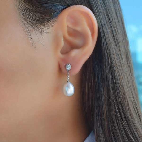 Σκουλαρίκια σε Κ18 λευκόχρυση βάση με μαργαριταρια και διαμάντια – L114676