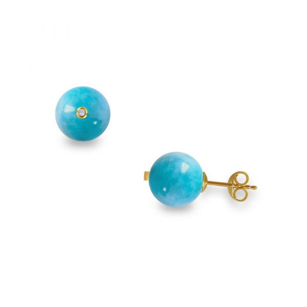 Σκουλαρίκια σε Κ18 χρυσή βάση με τιρκουάζ και διαμάντια – L317599T