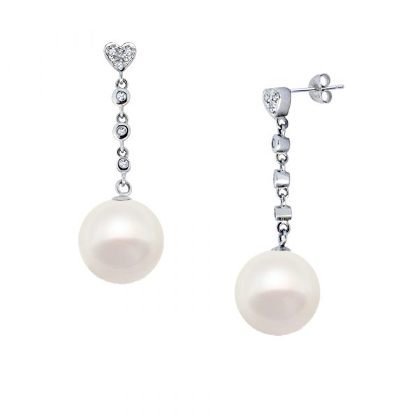 Σκουλαρίκια με Κ18 λευκόχρυση βάση, λευκά μαργαριτάρια και διαμάντια – F124080WW