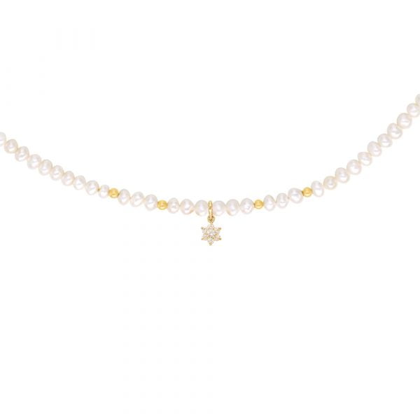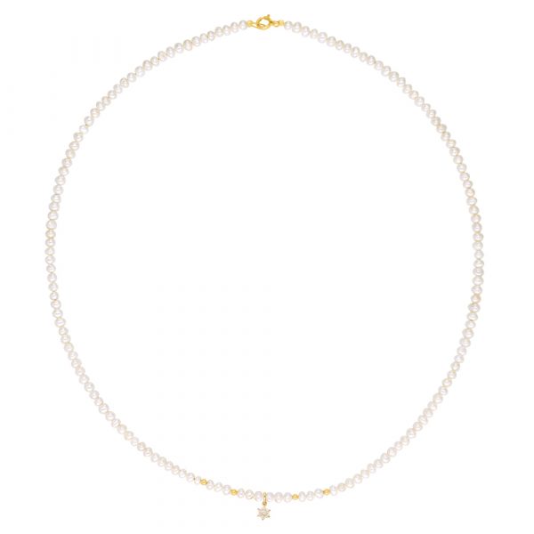 Κολιέ με Κ14 χρυσό κούμπωμα, μαργαριτάρια και ζιργκόν – F124110