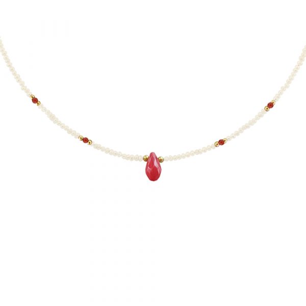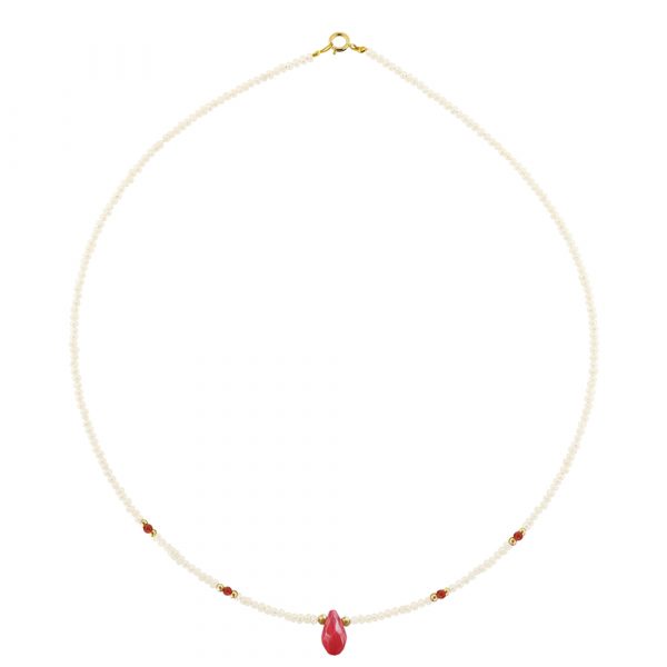 Κολιέ με λευκά μαργαριτάρια, κοράλλια και χρυσό κούμπωμα K14 – M121375