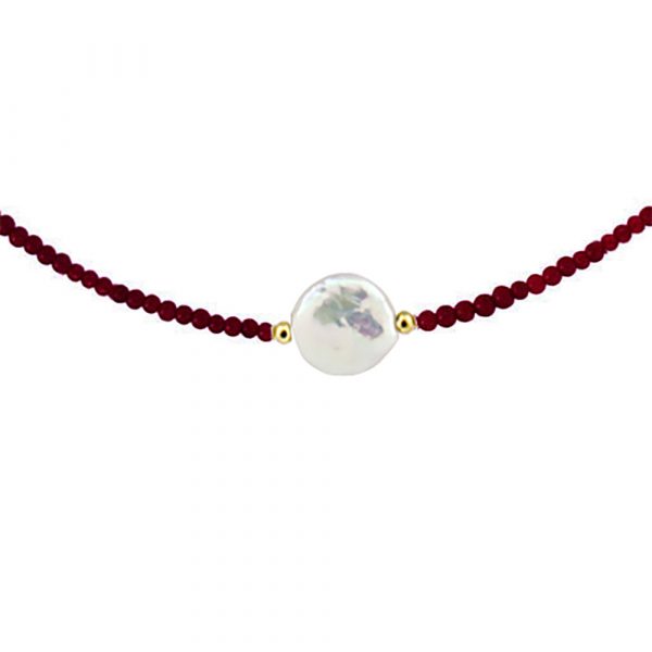 Κολιέ με Κ14 χρυσό κούμπωμα, γρανάδα και μαργαριτάρι – F124165K