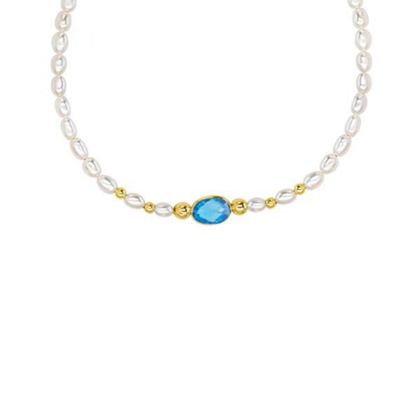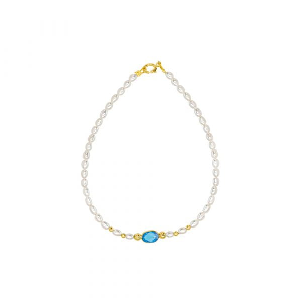 Βραχιόλι Κ14 χρυσό με λευκά μαργαριτάρια και blue topaz – F124153
