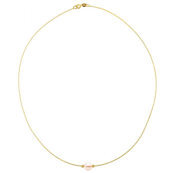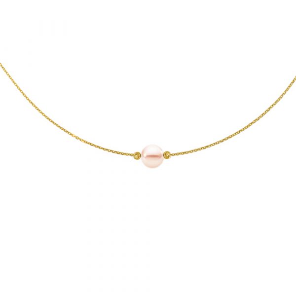 Κολιέ χρυσό Κ14 με σομόν μαργαριτάρι – M124237S