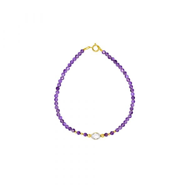 Βραχιόλι με K14 χρυσά στοιχεία, αμέθυστο και Crystal – F124146CR