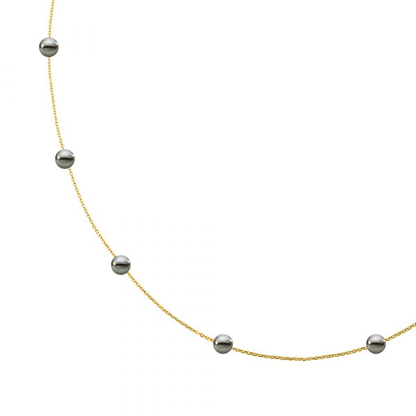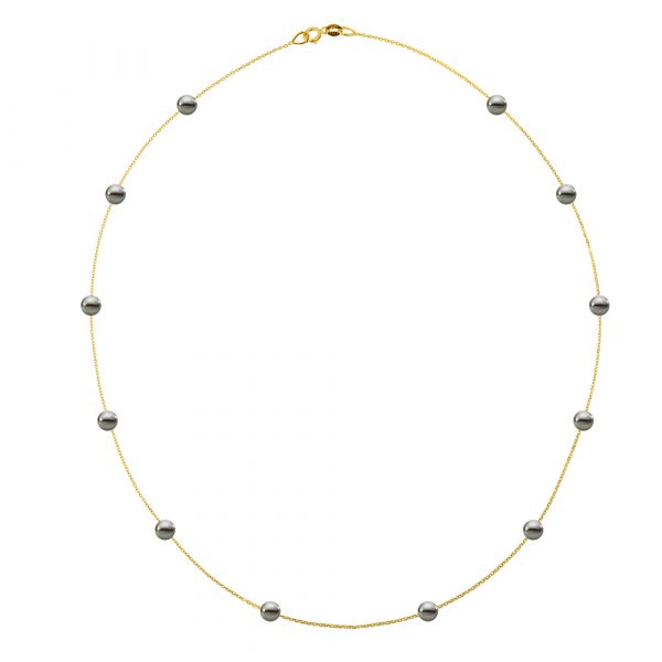 Κολιέ με μαύρα μαργαριτάρια σε Κ14 χρυσή αλυσίδα – F124247B
