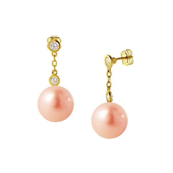 Σκουλαρίκια σε Κ14 χρυσή βάση με μαύρα μαργαριτάρια και ζιργκόν – G123978S